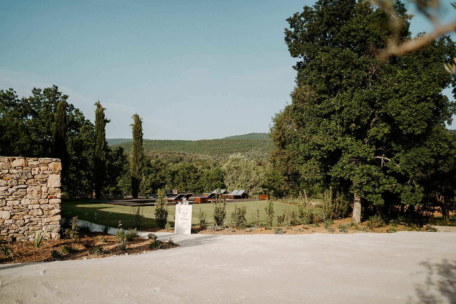 Un bel espace cocktail autour de la piscine dans ce domaine d’exception pour votre mariage en Provence