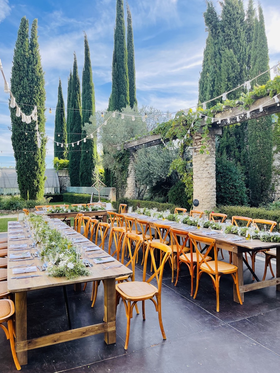 Un très beau domaine dans la drôme provençale, une magnifique décoration de table avec une disposition à l’extérieur afin de profiter au mieux du climat provençal