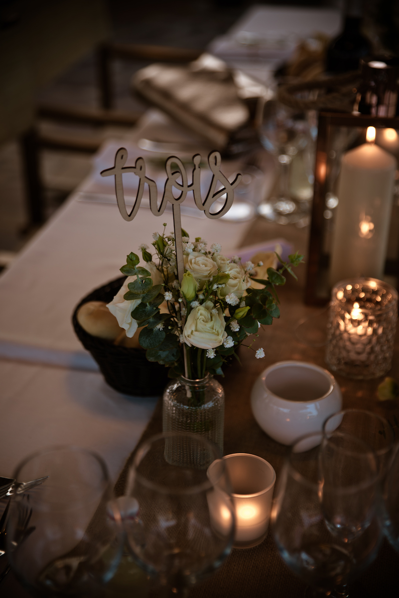 Numéros de tables en bois, mariage en Sardaigne sur la plage